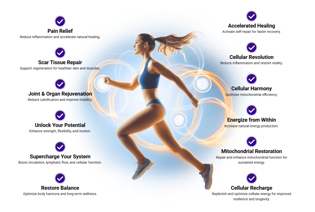 CellSonic Regeneration uses powerful energy waves that go deep into your body’s cells. These waves increase blood circulation and oxygen levels, helping damaged areas heal faster, stronger, and with less pain. Whether you’re recovering from an injury or just want to feel better, this technology helps your body do what it’s made to do—heal itself.